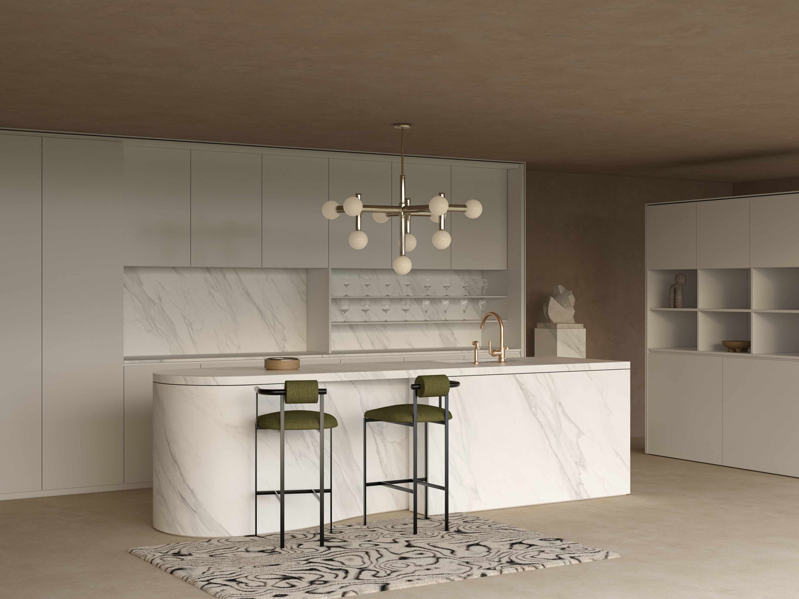 Alpine Glow features soft white tones with gentle veining, bringing a sense of calm and light to any space. A versatile option for modern or classic styles.