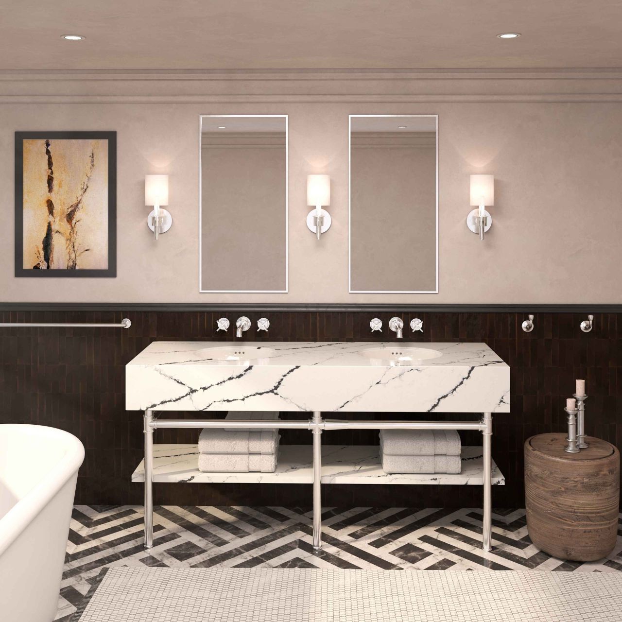 Ideal for bathroom vanities, providing a durable and elegant surface.